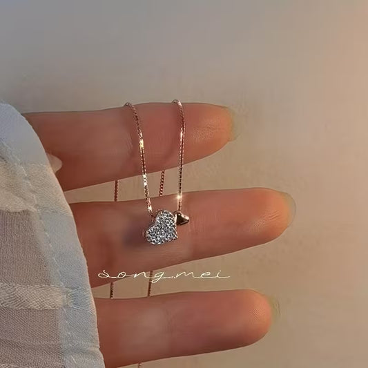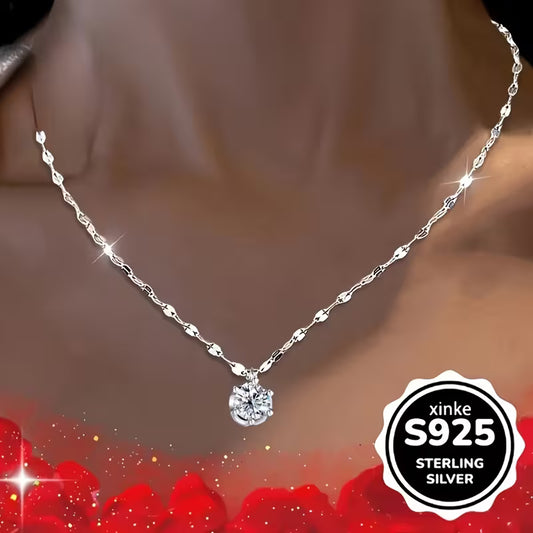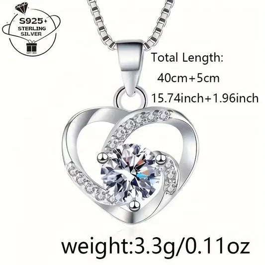 1pc 925 Silver Necklace for Women, Heart Pendant Fashion Collarbone Chain with Synthetic Zirconia- Perfect Mother's Day Gift, Bridesmaid Jewelry, Music Festival Accessories, Suitable for Daily Wear and Easter Party, Bridesmaid Gift, Stylish Pendant