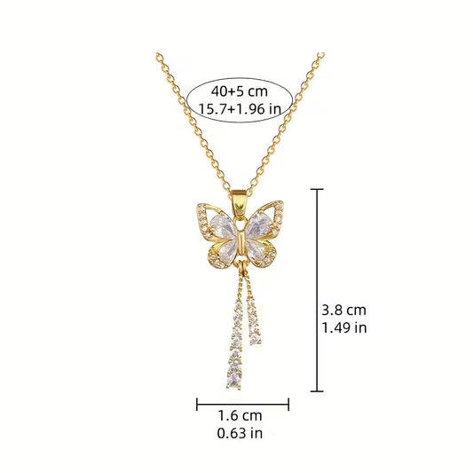 Elegant 14K Gold-Plated Butterfly Tassel Necklace with Sparkling Zirconia Accents - Perfect Gift for Fashion-Forward Women, Versatile for Daily Wear & Parties, Valentine'S Day Accessory, Party Accessory, Sophisticated Design, Intricate Craftsmanship