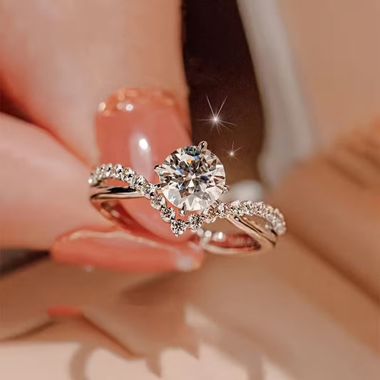 Elegant 2pcs Set Adjustable Cubic Zirconia Wedding Rings - French-Style Copper Engagement Rings with Synthetic Zirconia, April Birthstone, Perfect for Daily Wear or Special Occasions, Valentine'S Day Gift