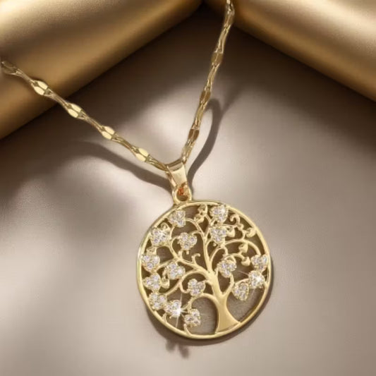 Elegant 18K Gold Plated Copper Tree of Life Pendant Necklace with Cubic Synthetic Zirconia, Women's Fashion Jewelry, Simple Cute Style, Perfect for Daily Wear and Parties, Special Occasion Jewelry, Elegant Accessory, Dainty Pendant, Stylish Necklace